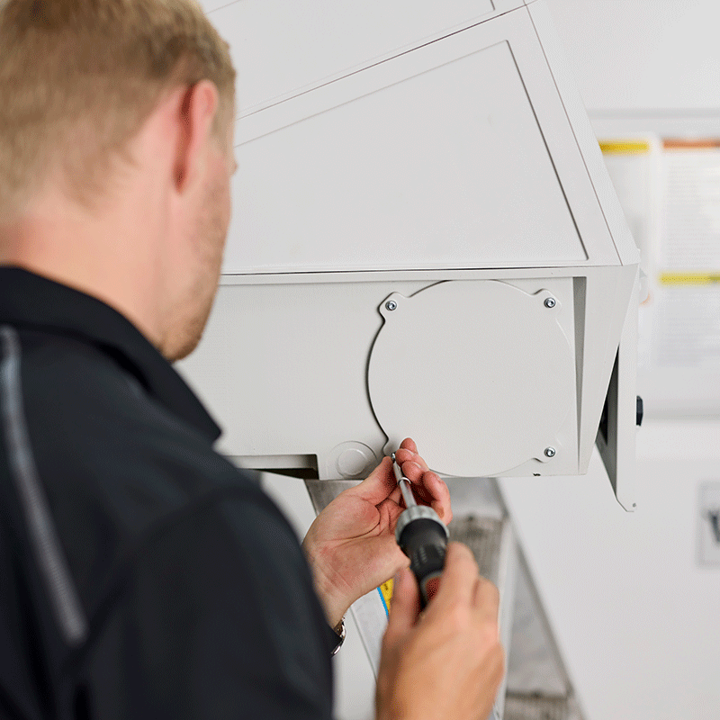 L’unità AW è dotata di un’interfaccia LED che comunica lo stato tramite semplici codici colore. A colpo d’occhio è possibile vedere se l’unità funziona normalmente, se richiede attenzione o se è necessario sostituire presto una cassetta filtro. Ciò consente di pianificare in anticipo l’assistenza e ordinare i filtri, rendendo la manutenzione prevedibile e garantendo il funzionamento affidabile dell’unità.