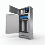 A differential pressure sensor monitors filter condition and activates cleaning only when needed. This reduces energy use and keeps filtration performance consistent. For processes requiring air recirculation, the system can be equipped with an optional HEPA filter stage.